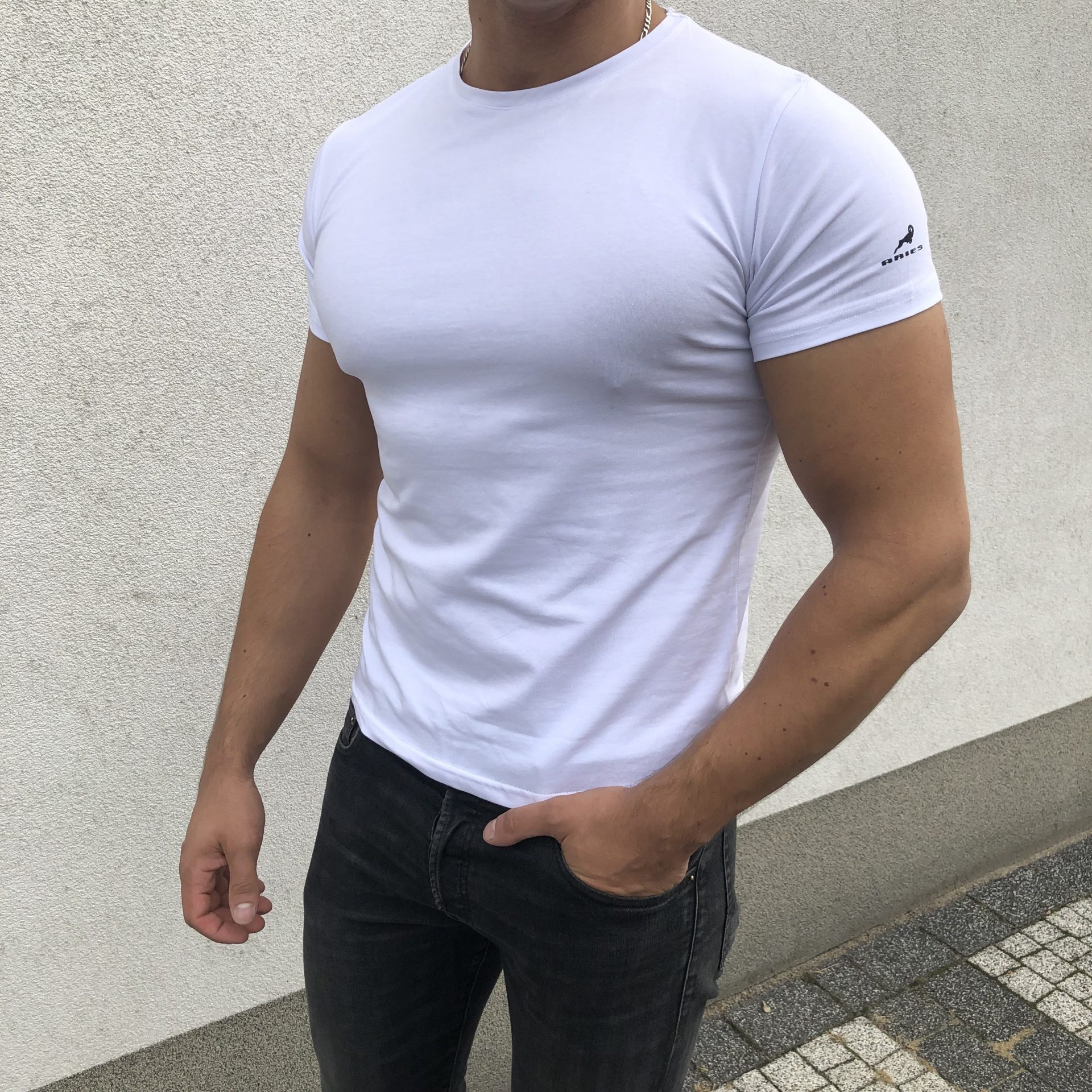 Biały t-shirt męski Aries to klasyczny i stonowany model dopasowanej koszulki o gładkiej fakturze, z delikatnym zdobieniem w postaci znaku logo Aries na lewym rękawie. Koszulka jest elastyczna i w bardzo efektowny sposób eksponuje atuty wyrzeźbionej sylwetki.
